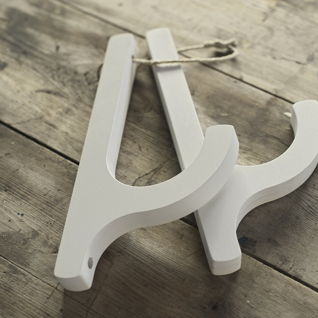 Swedish-made wooden lifebuoy holder for easy and stable suspension of your lifebuoy. Color: White. Fits all our lifebuoys.