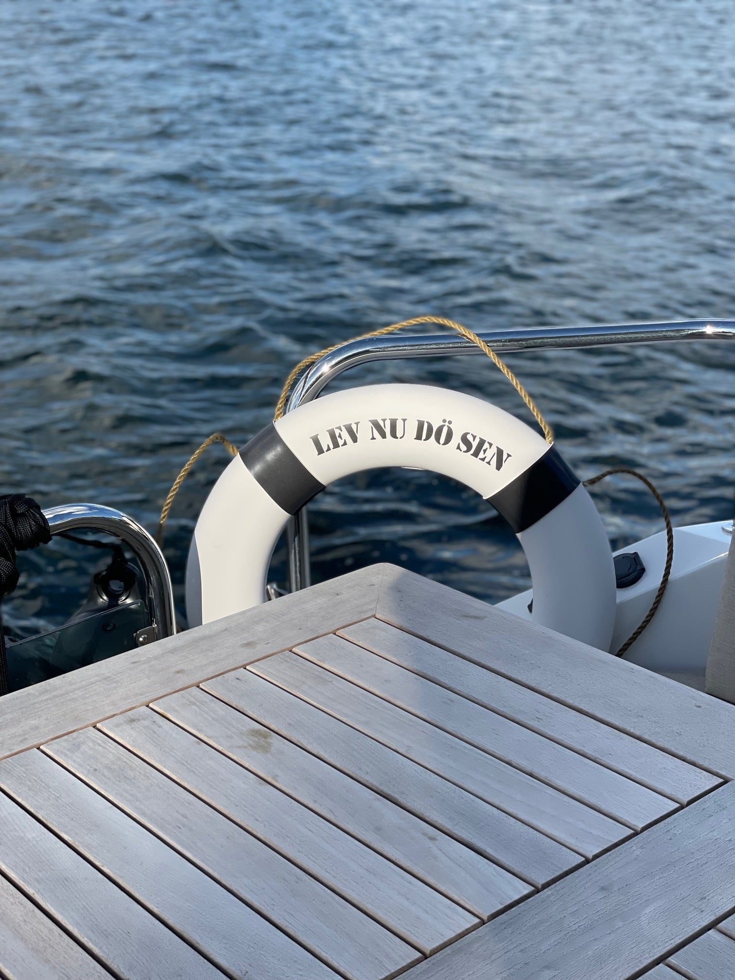 Notre LifeBuoy est un joli détail suspendu, et j'espère qu'il n'a jamais besoin d'être utilisé.